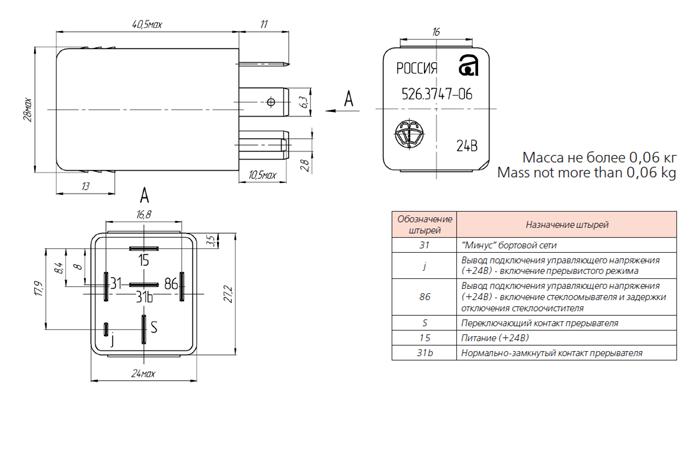 Реле стеклоочистителя ГАЗ, МАЗ, К..З (24 В) 6 контактов (программная регулировка паузы)
