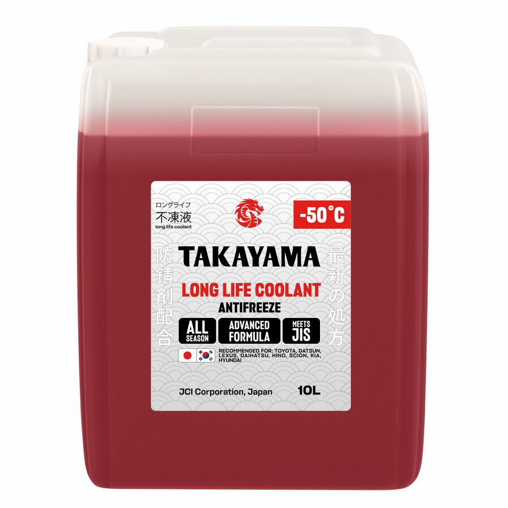 Антифризы «TAKAYAMA» обладают долгим сроком службы и повышенной защитой деталей системы охлаждения, что ведет к увеличению ее ресурса, что в свою очередь ведет к увеличению срока службы двигателя. Антифриз «TAKAYAMA» создан специально для японских автомобилей.