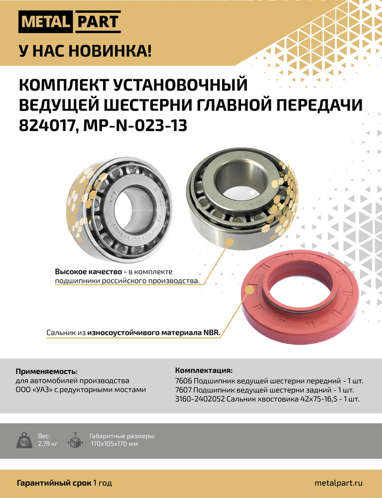 Комплект подшипников ведущей шестерни моста для автомобилей производства ООО "УАЗ" с редукторными мостами