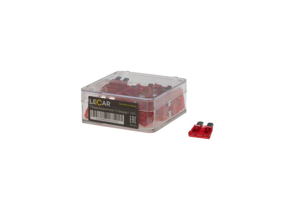 Предохранители LECAR Стандарт 10А, 50 шт., пластиковый бокс