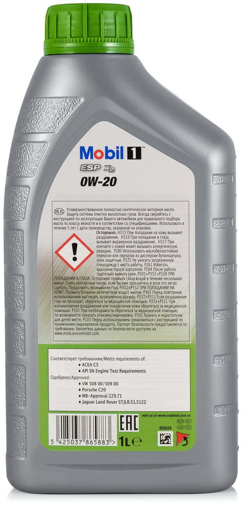 Масло Mobil 1 ESP x2 0W-20 было разработано экспертами компании для продления срока службы и поддержания эффективности систем снижения токсичности выхлопных газов новых европейских автомобилей, оборудованных как дизельными, так и бензиновыми двигателями, в которых требуется применение масел класса вязкости SAE 0W-20.