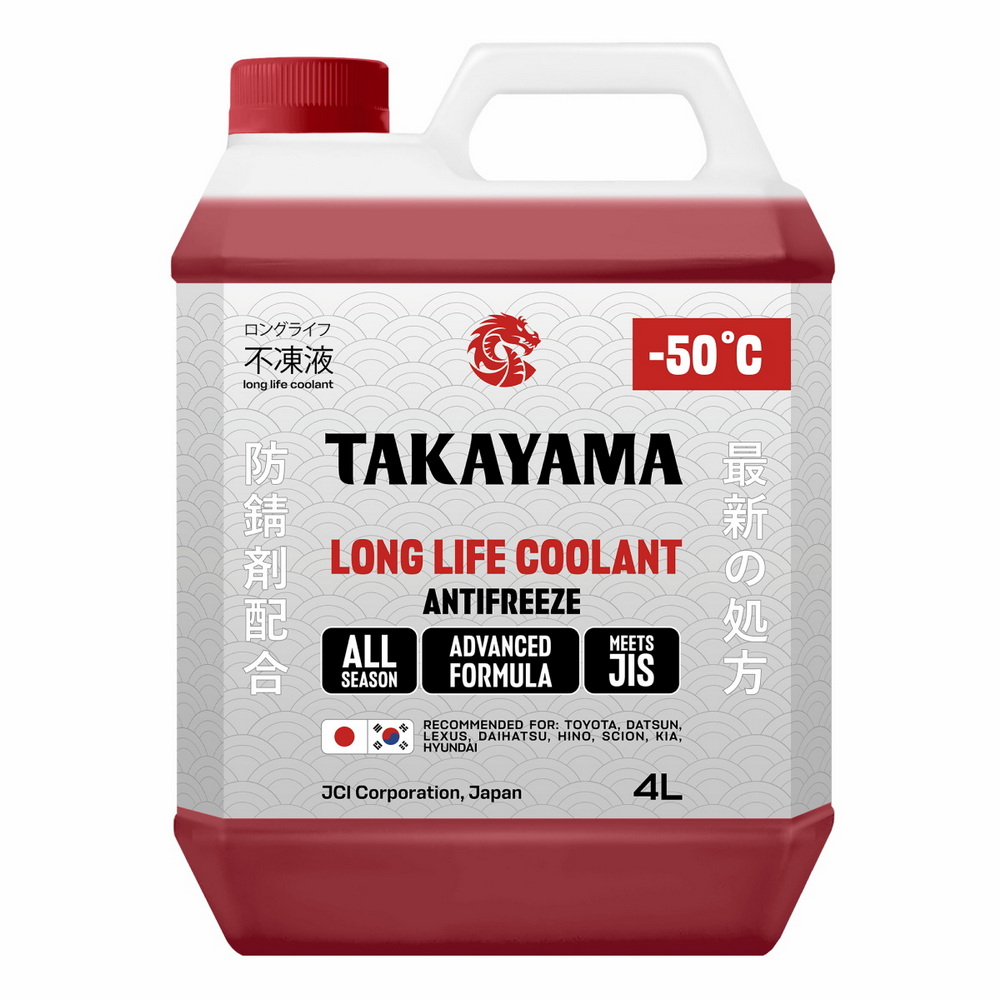 Антифризы «TAKAYAMA» обладают долгим сроком службы и повышенной защитой деталей системы охлаждения, что ведет к увеличению ее ресурса, что в свою очередь ведет к увеличению срока службы двигателя. Антифриз «TAKAYAMA» создан специально для японских автомобилей.